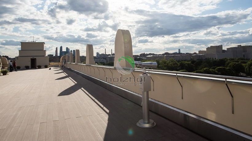 11 июня 2015 года было открыто после реставрации здание Главного входа в Парк Горького - легендарная арка на Крымском Валу, ставшая одним из символов Москвы, стала доступна для посетителей: в пилонах разместился Музей истории Парка Горького, а на крыше - смотровая площадка с видами на парк и город. Смотровая площадка на крыше Главного входа в Парк Горького находится на высоте 18 метров, её площадь составляет более 700 квадратных метров. При реставрации смотровой площадки была применена террасная доска Olympiya, которая отлично вписалась в общий экстерьер площадки, при этом обладая прекрасными свойствами по прочности и долговечности. Террасная доска не подвержена выгоранию, и крайне износоустойчива, что позволяет выдерживать перемены погодных условий и большой поток посетителей.